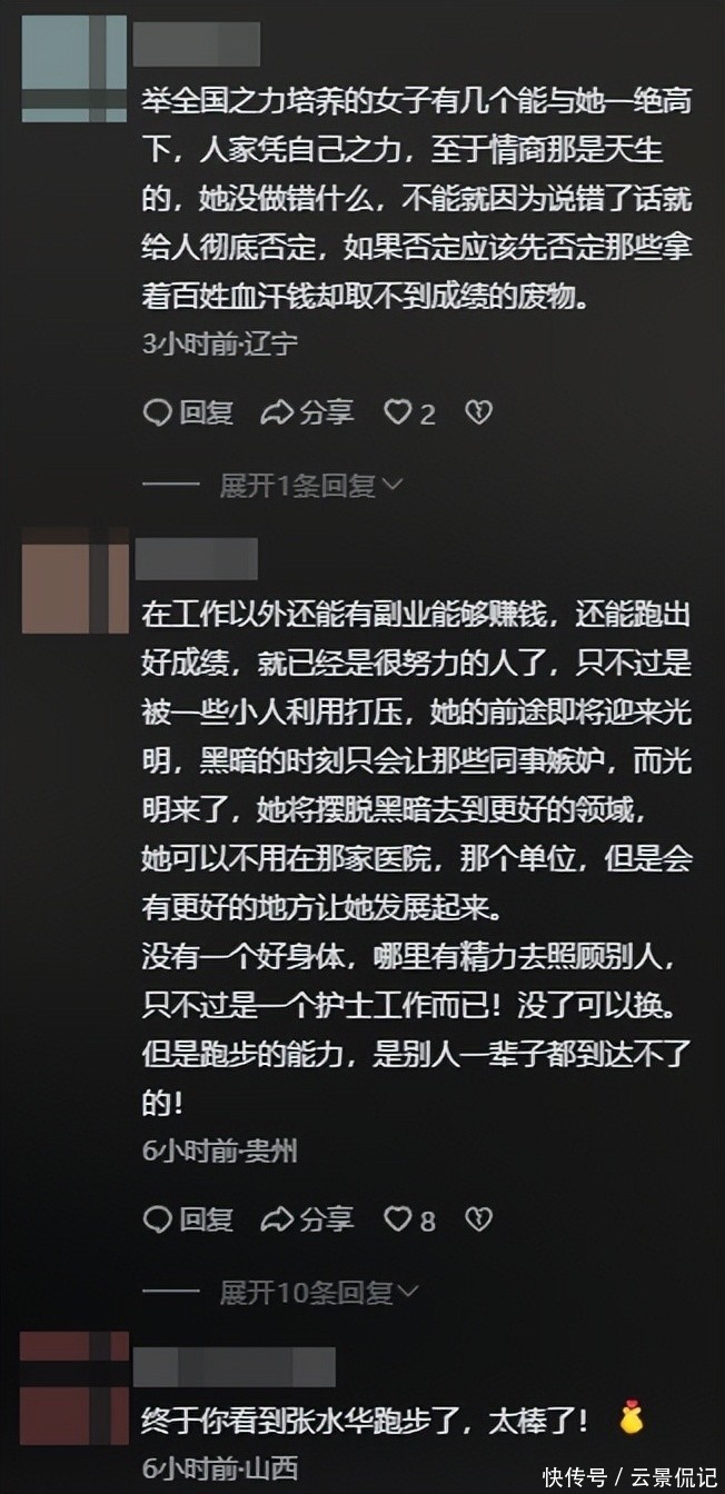 更有声音反问:比起那些拿着财政经费却毫无建树的运动员,张水华凭实力赢奖金有何不可?