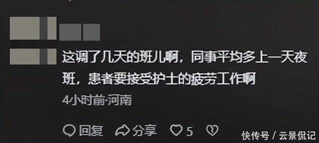 这种做法直接影响了护理团队的正常排班机制,导致同事不得不承担额外夜班任务,进而可能影响患者护理质量。